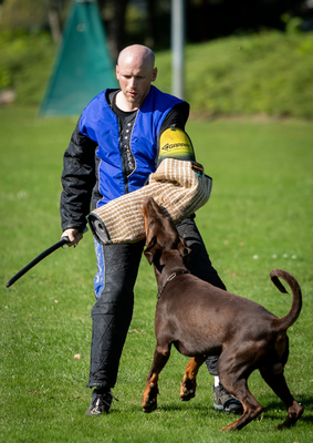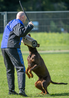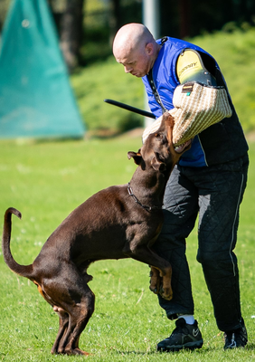 Sie ist für mich der Inbegriff eines Dobermanns. Im Schutzdienst zeigt sie sich mit voller Power und Arbeitsfreude – Zuhause hingegen ist sie sanft, verschmust und zuverlässig wie ein Lamm.