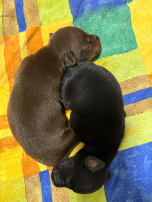 Am 16 August brachte unsere Hündin ihre Welpen zur Welt. Es sind 5 Rüden (2 braune, 3 schwarze) und 3 Hündinnen (3 Schwarze).